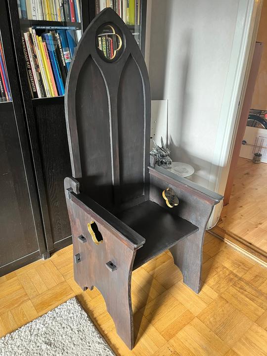 Detta är stolar som jag själv byggt och som det är tänkt att kunna ta med ut när man tältar på medeltidsmarknader och liknande.